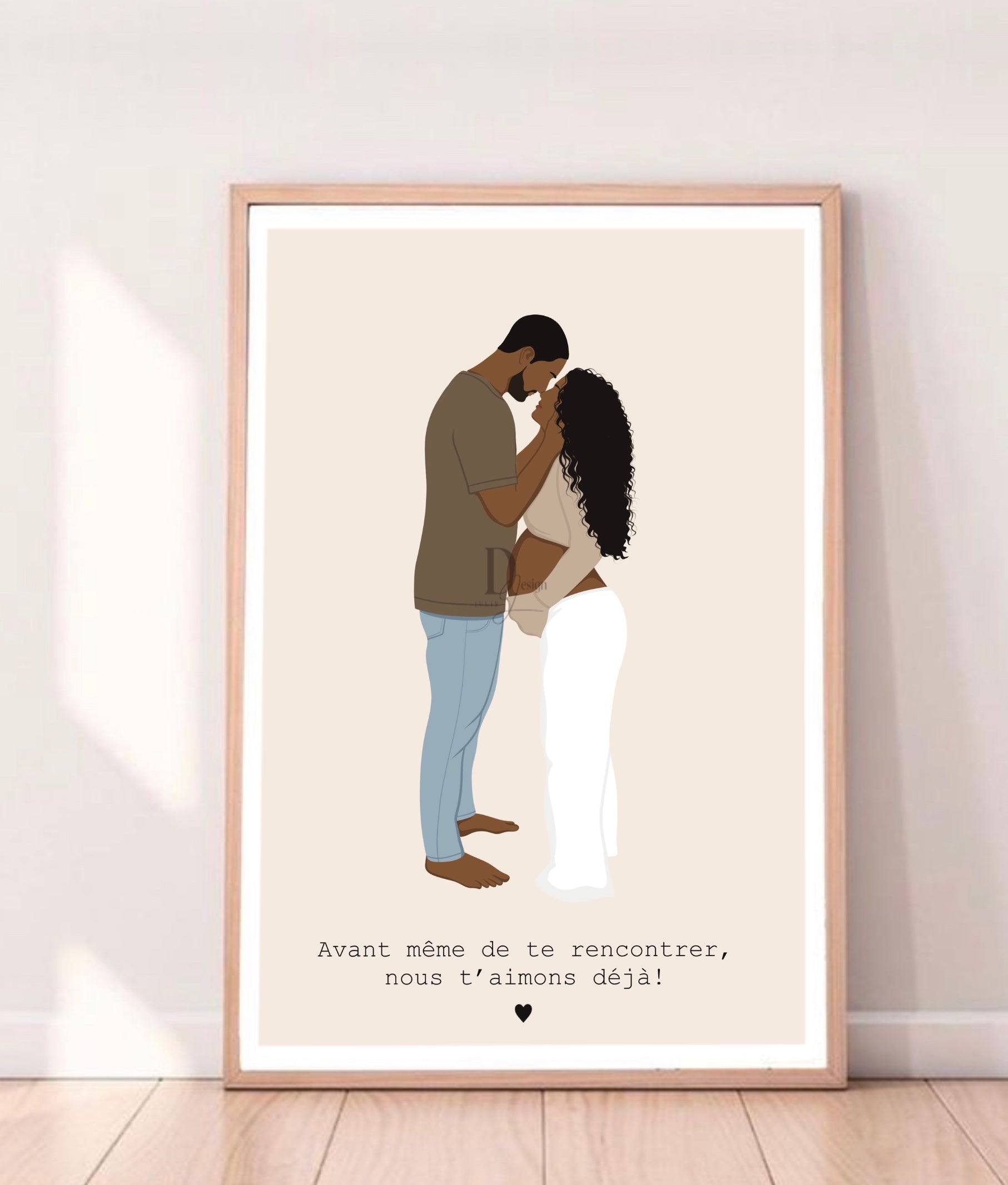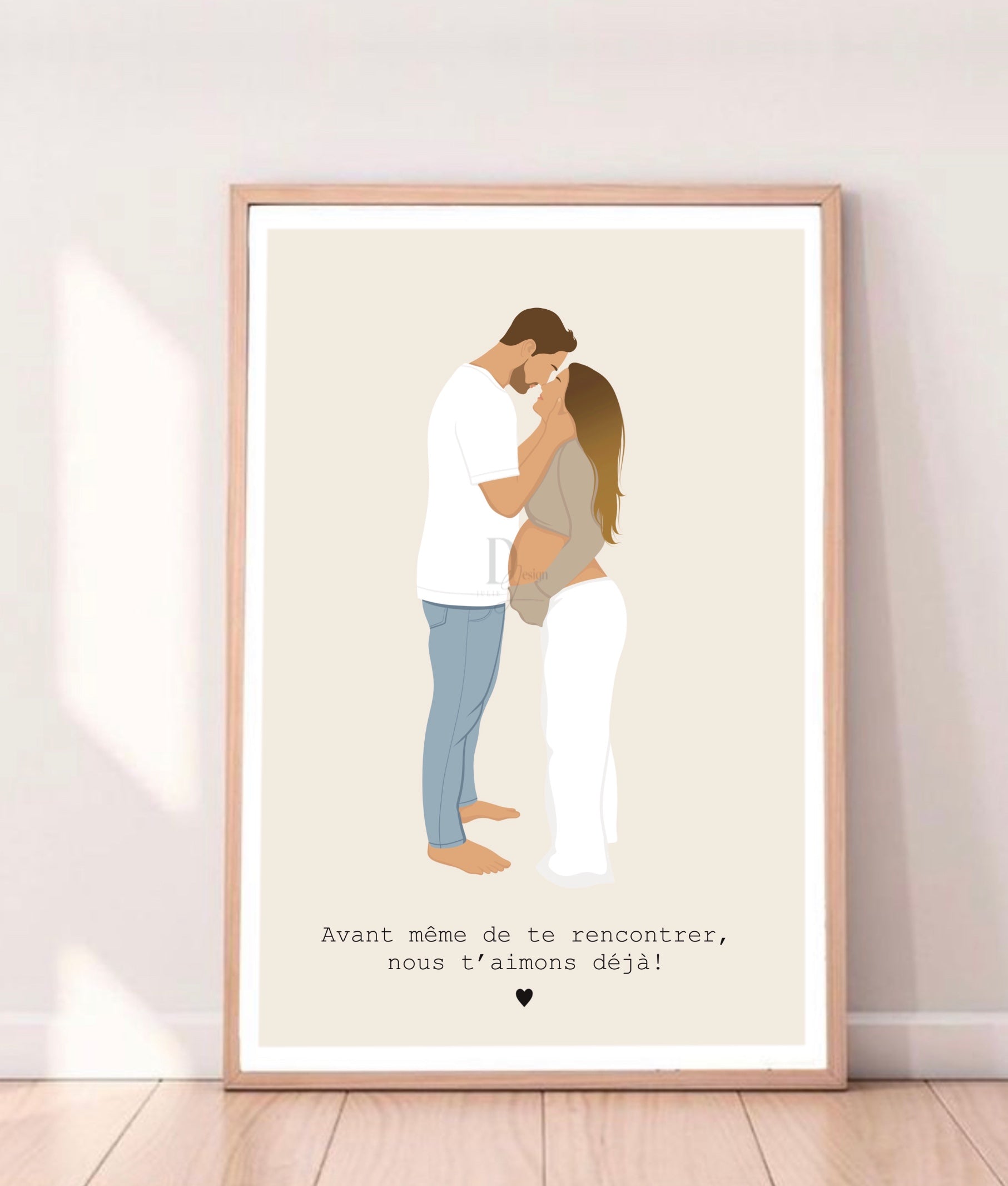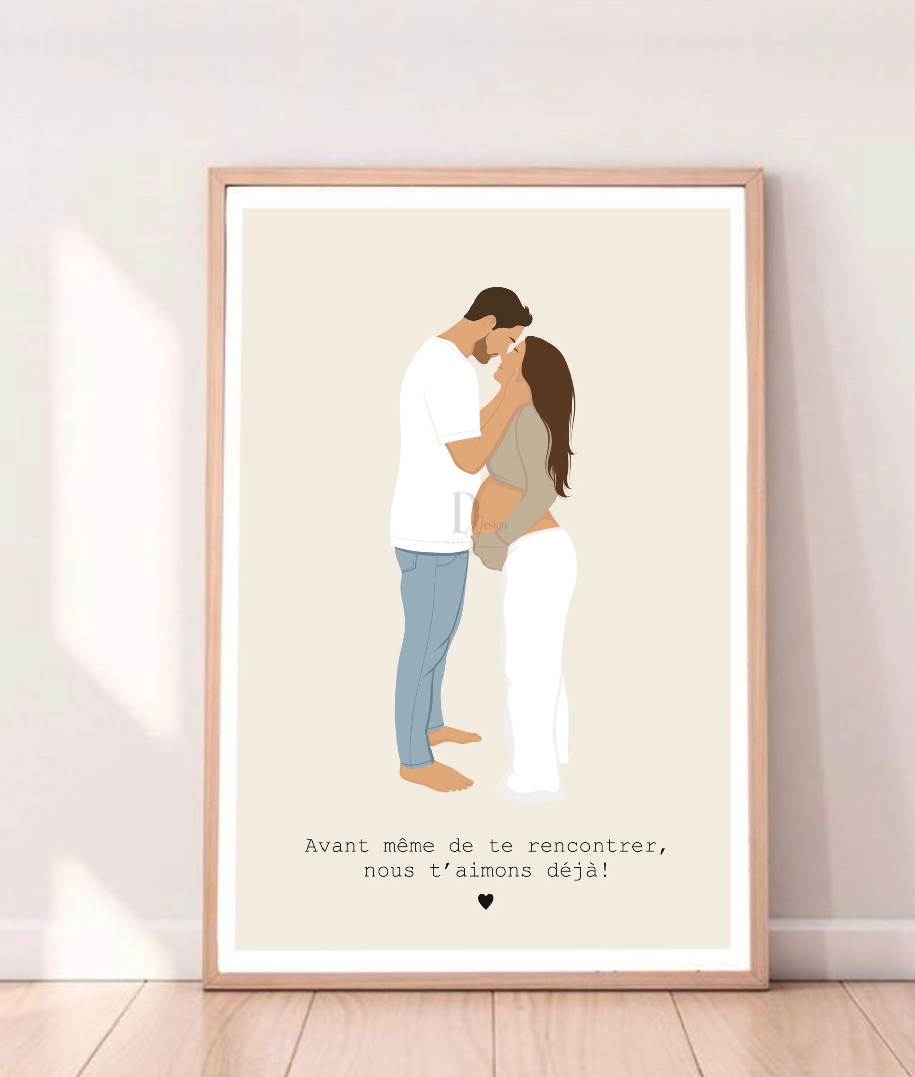 Cette illustration a été créée à l’avance dans mon style graphique, puis personnalisée selon vos informations afin de vous offrir un portrait doux, moderne et harmonieux, sans les délais d’un dessin sur-mesure.