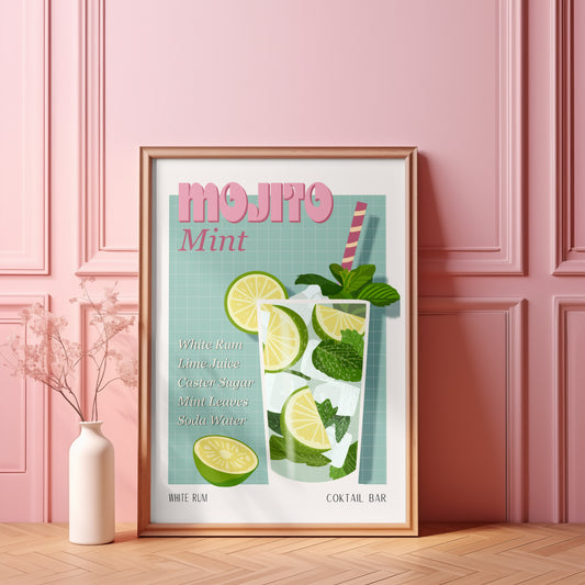 MOJITO PRINT - Cartel de bar - Decoración de pared - Cartel de cóctel - Decoración de interiores