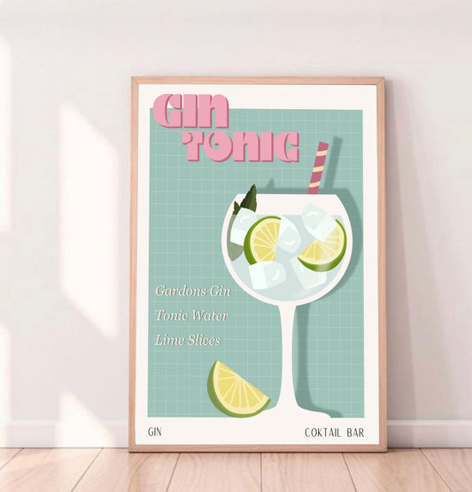 GIN TONIC PRINT - Cartel de bar - Decoración de pared - Cartel de cóctel - Decoración de interiores