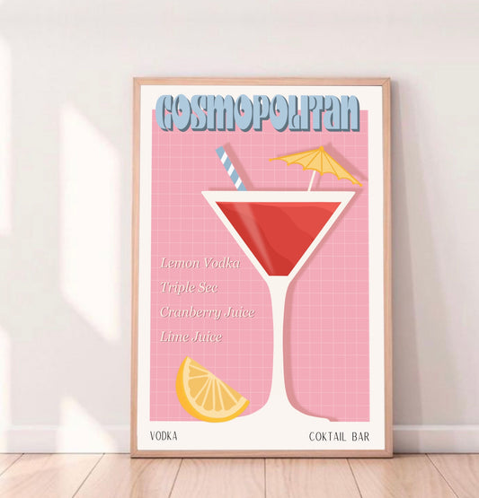 COSMOPOLITAIN PRINT - Cartel de Bar - Decoración de Pared - Cartel de Cóctel - Decoración de Interiores