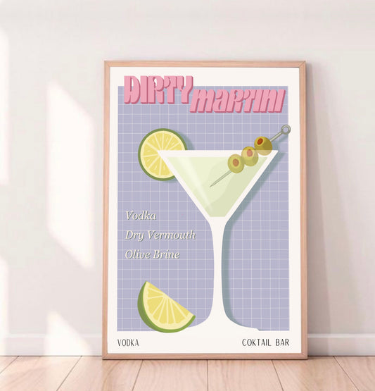 DIRTY MARTINI PRINT - Cartel de bar - Decoración de pared - Cartel de cóctel - Decoración de interiores