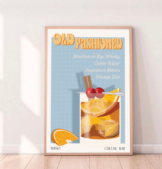 OLD FASHION PRINT - Cartel de bar - Decoración de pared - Cartel de cóctel - Decoración de interiores