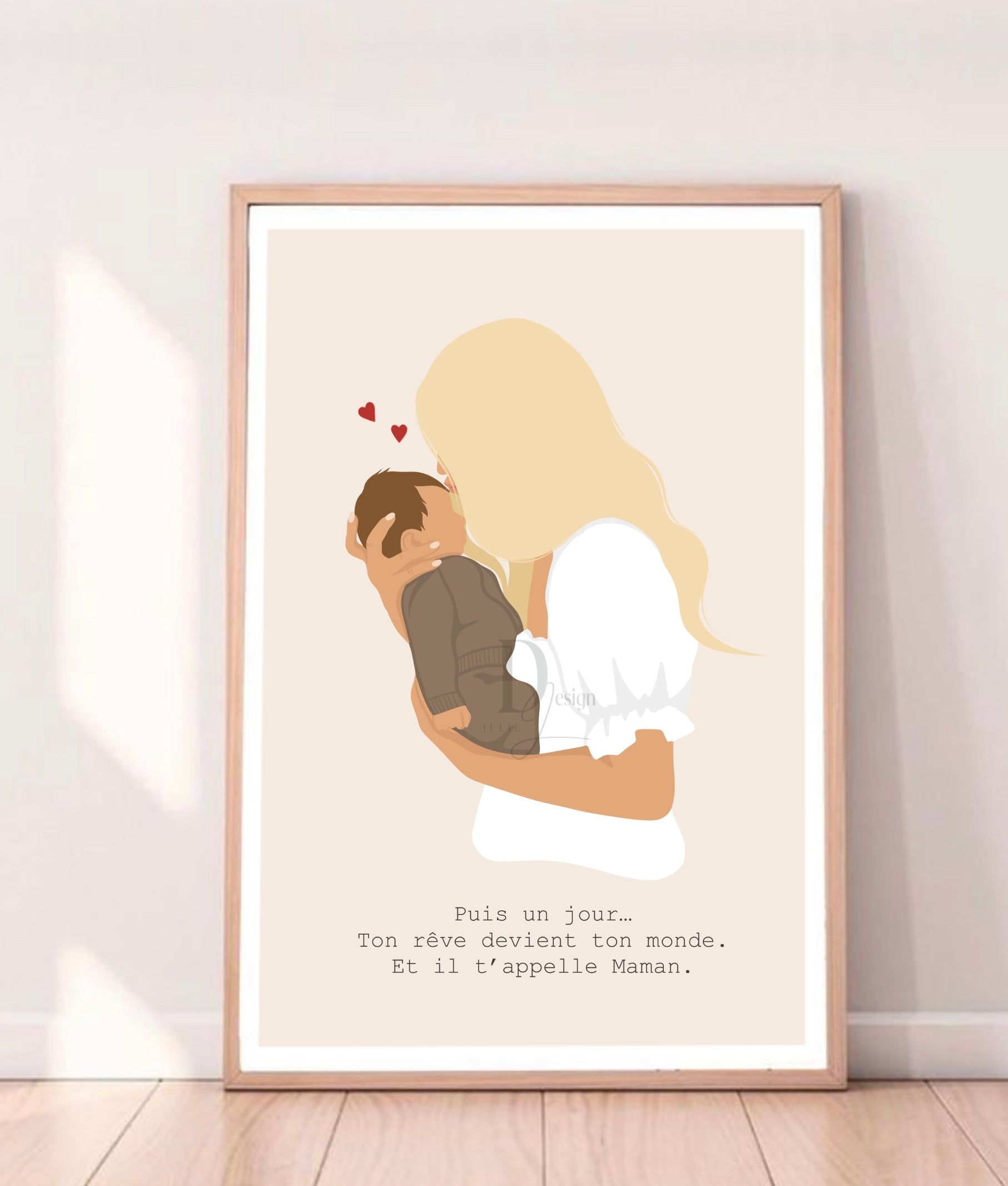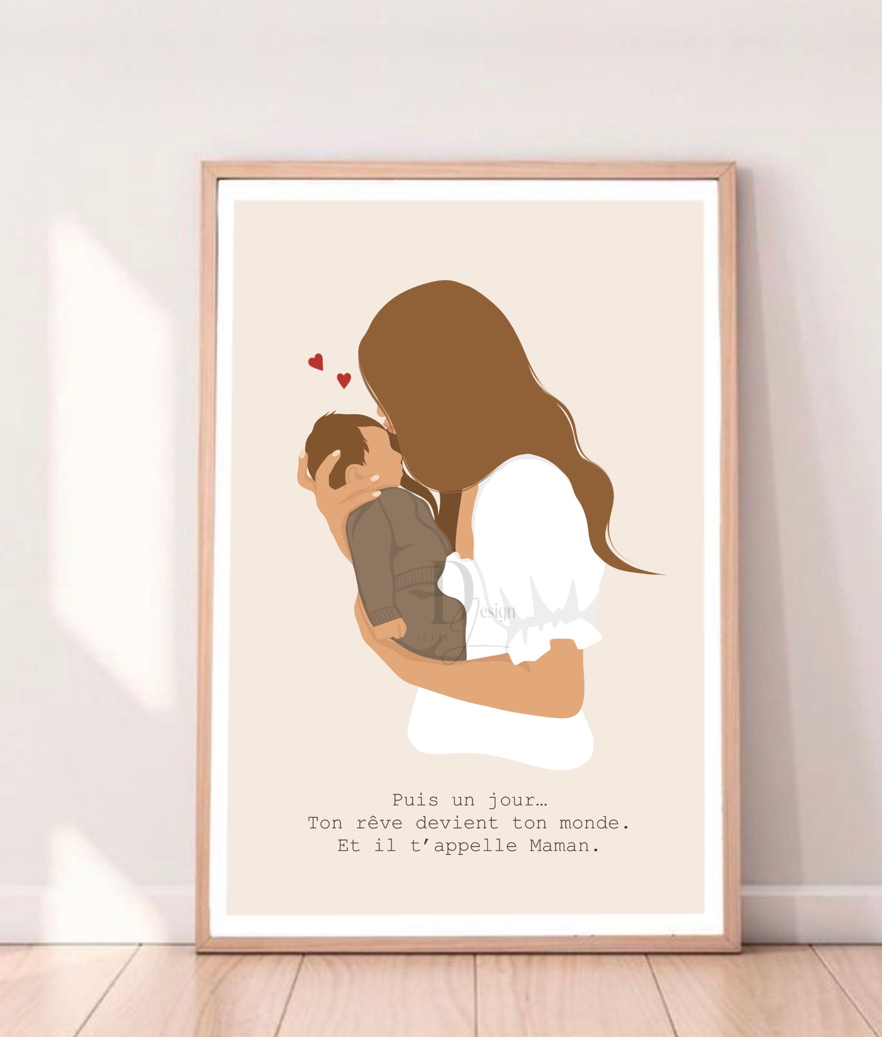 Cette illustration a été créée à l’avance dans mon style graphique, puis personnalisée selon vos informations afin de vous offrir un portrait doux, moderne et harmonieux, sans les délais d’un dessin sur-mesure.