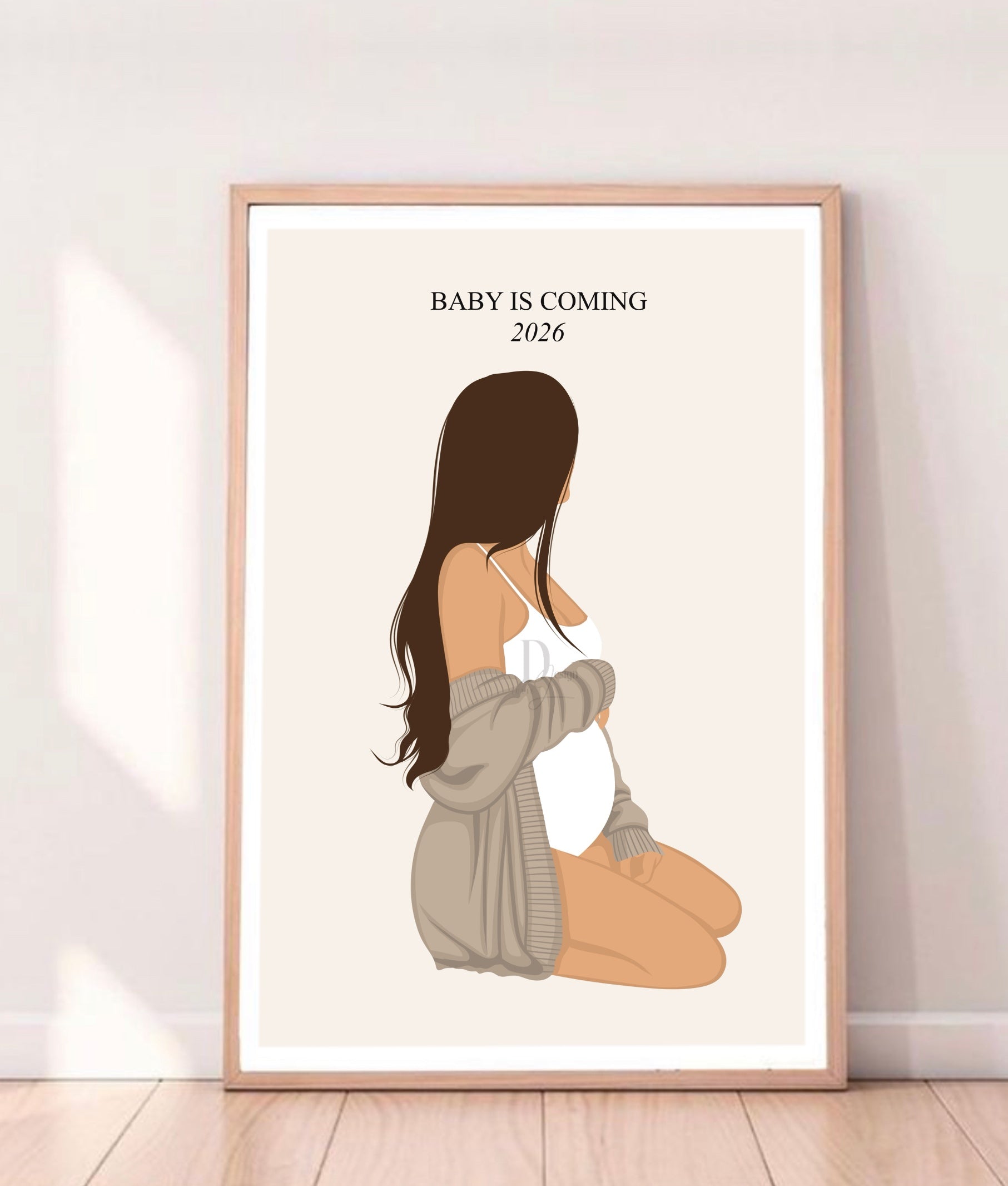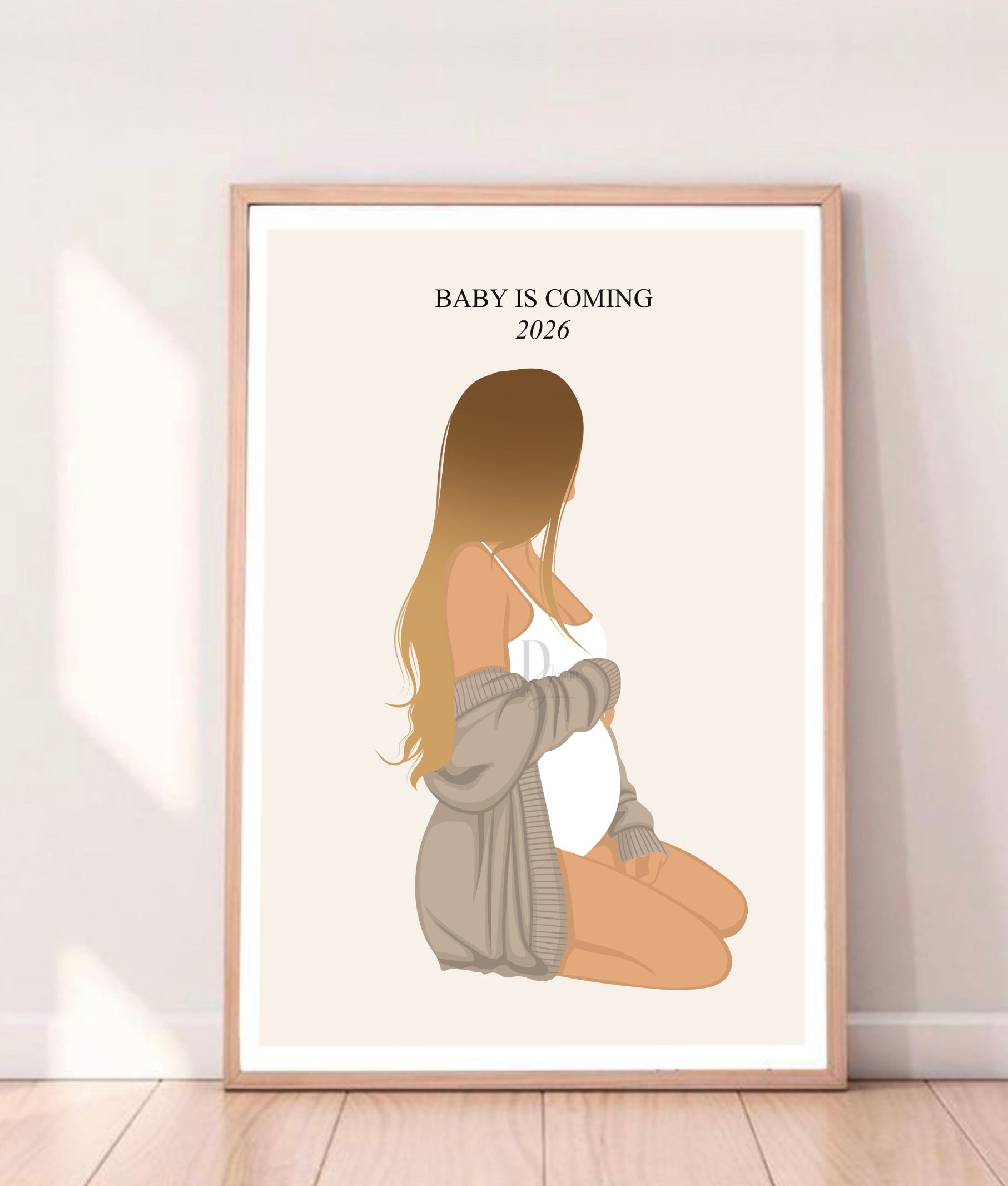 Cette illustration a été créée à l’avance dans mon style graphique, puis personnalisée selon vos informations afin de vous offrir un portrait doux, moderne et harmonieux, sans les délais d’un dessin sur-mesure.