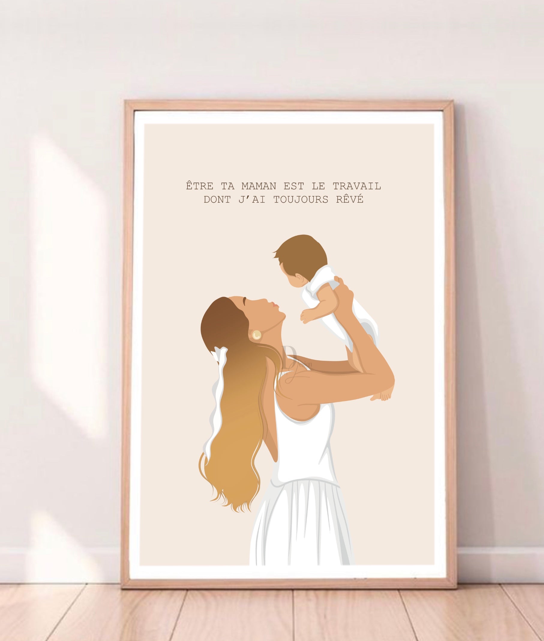 Cette illustration a été créée à l’avance dans mon style graphique, puis personnalisée selon vos informations afin de vous offrir un portrait doux, moderne et harmonieux, sans les délais d’un dessin sur-mesure.